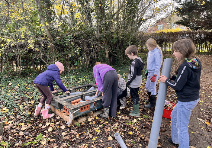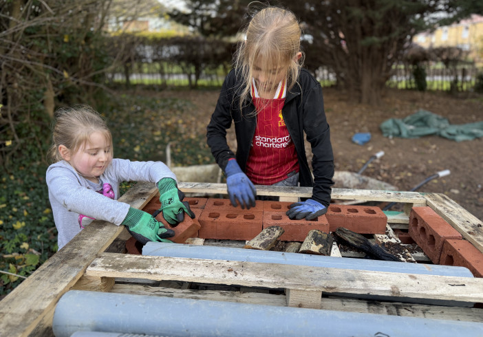 Bug hotel building workshop at Teynham Primary School