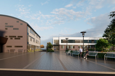 The new facility will include a range of modern teaching spaces alongside a sixth form social area incorporating a dedicated grab-and-go servery. External works form an integral part of the scheme, including adaptations to the surrounding areas and the creation of improved pedestrian routes linking the new building to the main school facilities.